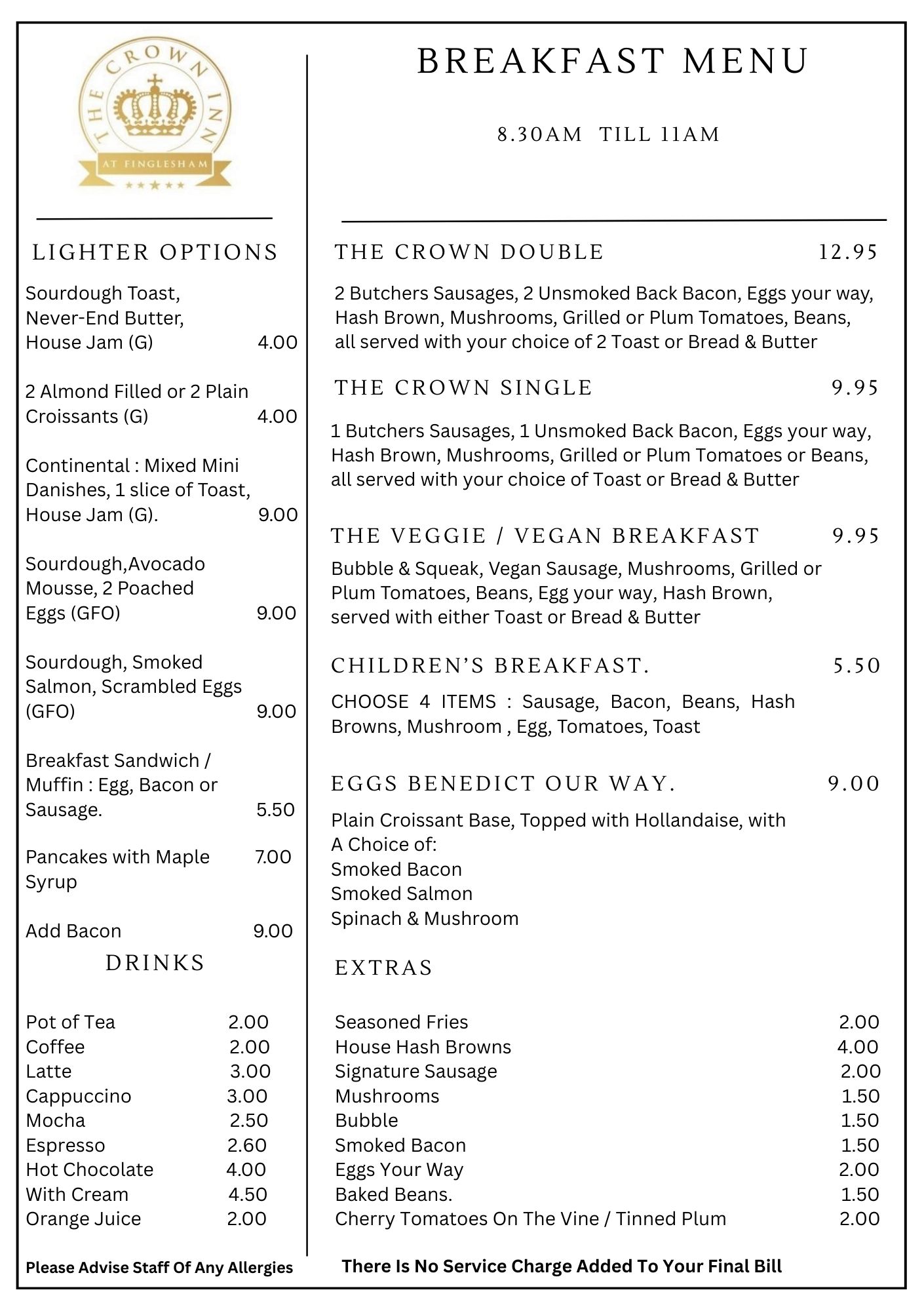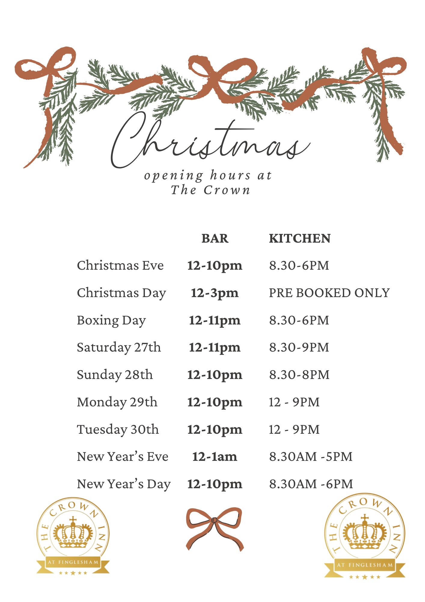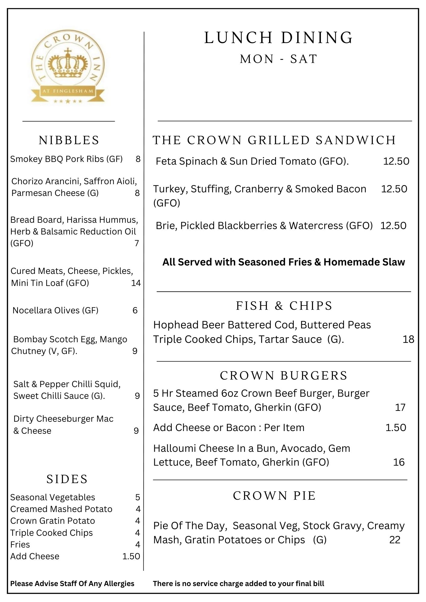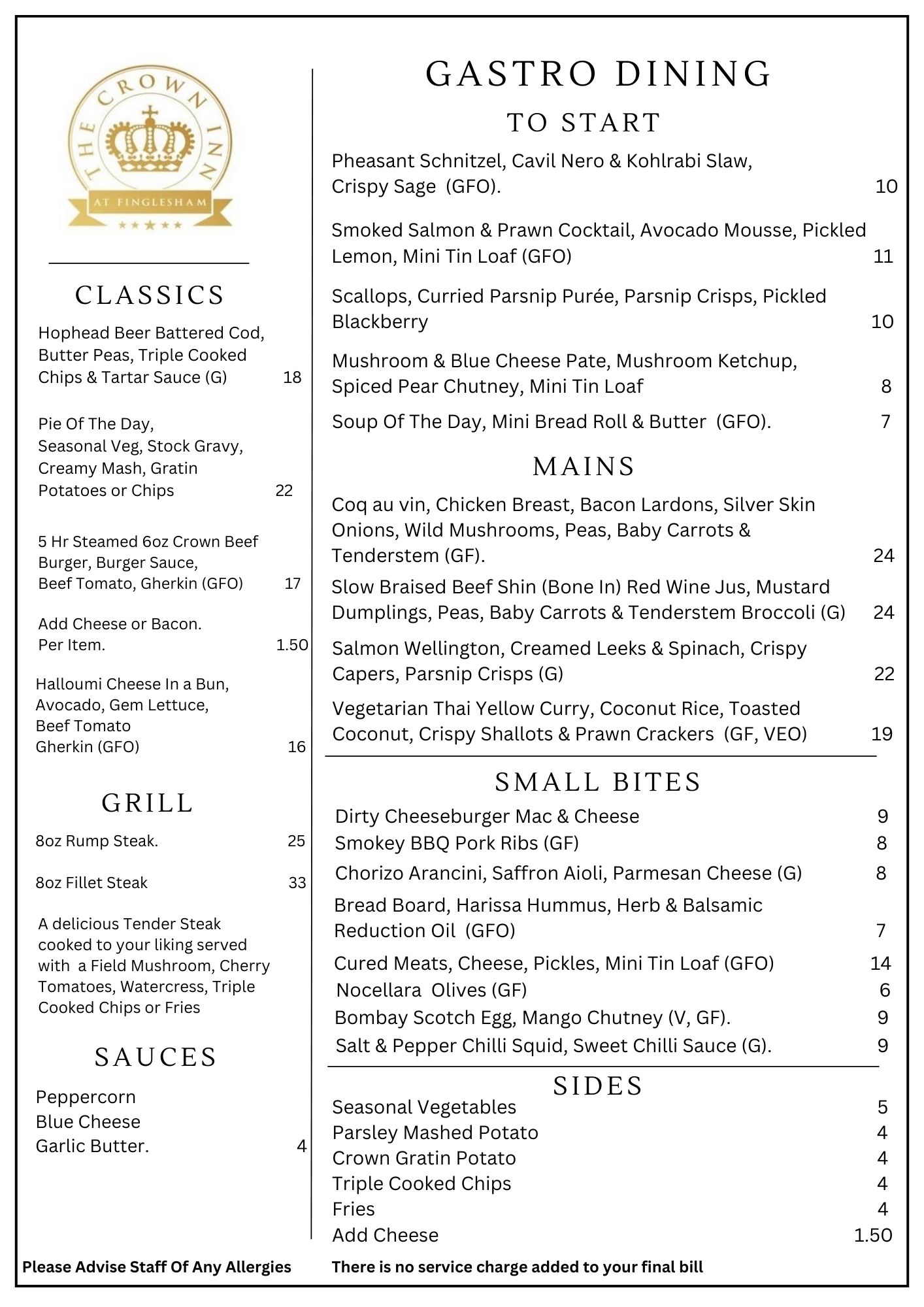 For Table Bookings & Lodge Enquiries - email - crowninnbookings@icloud.com